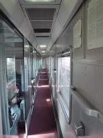 列車の通路は車両の右側か左側にあり、非常に細い。