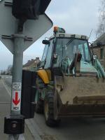 いかにもヨーロッパ風な町中に場違いな重機。ちょうど赤信号で二人の後ろに着くブルトーザー(?)をカメラに収めようとする土屋先生。ところがブルトーザーの中で何にがしかわめきつつ土屋先生を指さす男・・・