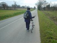 上り坂、確かに上り坂だが非常にゆるい。町中を歩いていたら坂だと気付かないかもしれないほどに。しかし、自転車は少しの坂でも大きな負担になる。平坦な道であればコロコロと慣性力で進めるが、少しでも坂があるとすぐに前に進む力を失ってしまう。つまりちょっとでも傾斜があればえんえんとこぎ続けなければならないというわけだ。