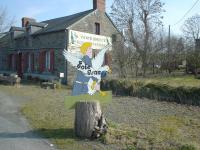あいもかわらぬ風景の中をとろとろと進む二人。肥料の匂いも気にならなくなり、周りの景色に目を向けられるようになった光君の前に鳥と女性の絵の描かれた看板が。鳥をお腹のところで抱える女性の絵は、まさにヨーロッパという雰囲気満点だ。