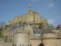 モン・サン・ミシェルは修道院なのだが、島のふちを囲むように作られた城壁(城ではないけど)が島そのものをまるでひとつの城のように見せているのだろう。