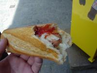 ちなみにホットドックはカウンターの向かって右側にあった、搬送用エレベーター(もちろん人は乗れないサイズの)で下の階から運ばれてきた。入って一度も階段を上がってないのに 下から来るというのはかなりインパクトが強かったらしく、二人ともしばらく硬直していた。