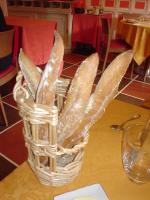 フランスパンというにはものすごく小さく、上と下がとがっている・・・というか形がばらばらだ。非常に手作りっぽいのがなんともいえなく高級感と言おうと思えば言えるような言えないような。