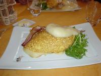 ひとつの大きなオムレットを二つに分けてそれぞれの皿にのせる。15ユーロ程追加で支払えば丸々ひとつ食べれるのだが、注文するときはそんなことは知らない二人。