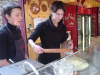店のお姉さんは手馴れた手つきでクレープをひっくり