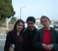 怪訝な顔でカメラを受け取る光君を前に土屋先生は二人のフランス美女にはさまれにっこり。肩に手をまわしているあたりがいやらしい。