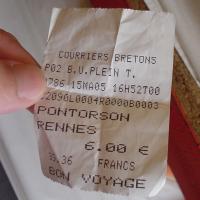 チケットはPontorsonからレンヌまでの片道で6ユーロ。