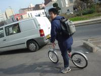 二人は荷物室に預けた折りたたみ自転車を受け取り、外に出る。